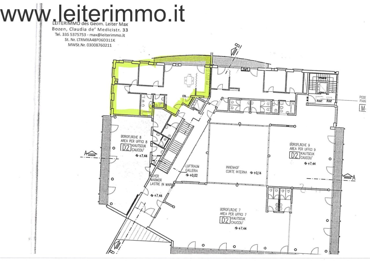 bell'ufficio a Baolzano/Sud nelle vicinanze dell'aeroporto, ben servito, con accesso alla stazine autostradale BZ Sud. di mq 120 lordi e 103 mq utili, climatizzato, con 4 locali, doccia/WC, Wc, 2 posti auto